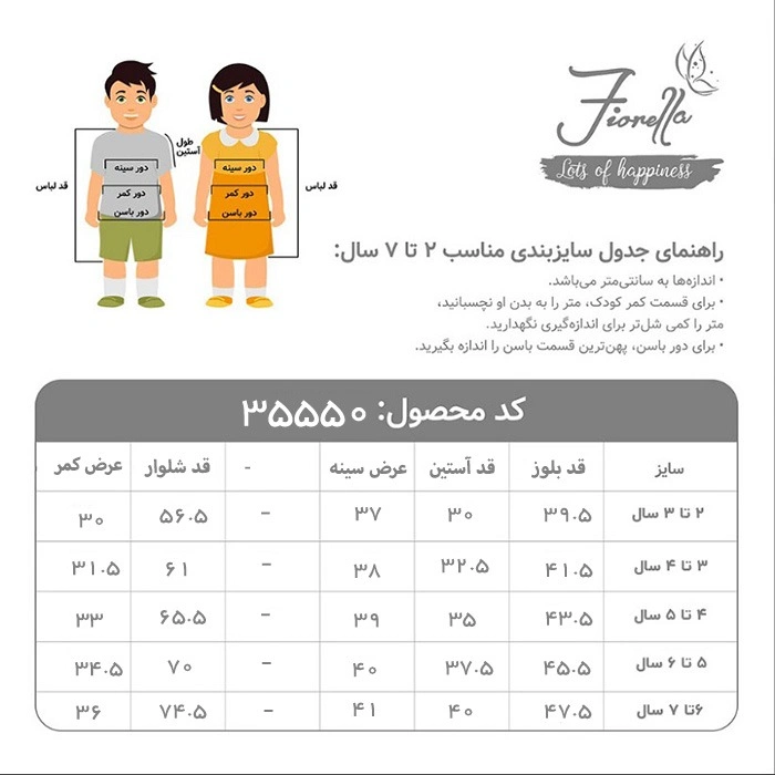 | سایز | 2-3 سال, 3-4 سال, 4-5 سال, 5-6 سال, 6-7 سال |