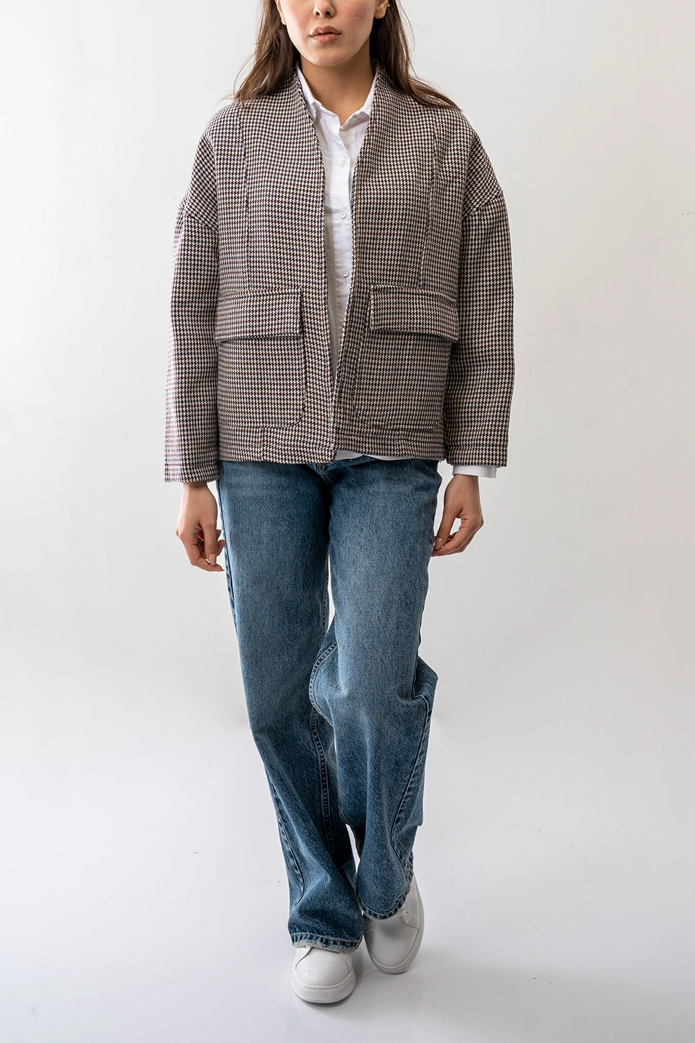 - این پالتو با یقه ایستاده و فرم متناسب (Fit) طراحی شده تا ظاهری خوشفرم، مرتب و مدرن به استایل بانوان ببخشد.