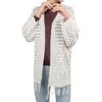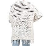 - این ژاکت با طراحی بافتنی و لبههای ریشدار، حس راحتی و جذابیت را بهطور همزمان ارائه میدهد.