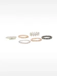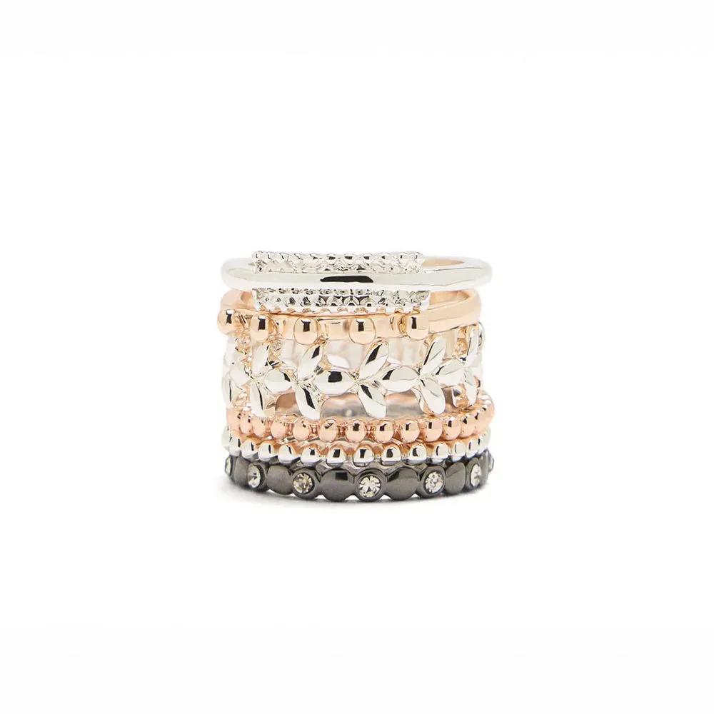 این انگشتر زنانه پارفوآ Parfois کد 173819 شامل چند انگشتر با پرداخت‌ها و جلوه‌های متفاوت است که در کنار یکدیگر، ترکیبی چشم‌نواز و منحصربه‌فرد ایجاد می‌کنند. طراحی چندتکه و رنگ متالیک چندرنگ (Metallic Multicolor) باعث می‌شود این ست انگشتر جلوه‌ای مدرن، جسورانه و کاملاً ترندی داشته باشد. سادگی فرم در کنار تنوع پرداخت، این انگشترها را به گزینه‌ای ایده‌آل برای استایل‌های روزمره، فشن و حتی استایل‌های مینیمال با اکسسوری شاخص تبدیل می‌کند. امکان استفاده از انگشترها به‌صورت تکی یا هم‌زمان، آزادی عمل بالایی در استایل‌سازی به شما می‌دهد.