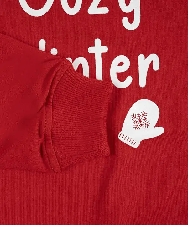 - این بلوز با یقه گرد و آستین بلند طراحی شده و طرح تایپوگرافی در قسمت جلوی لباس، جلوهای شاد و امروزی به آن بخشیده است.