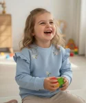 - این بلوز زیبا در دو رنگ آبی روشن و سبز روشن عرضه شده و برای دختران ۲ تا ۱۲ سال طراحی شده است.