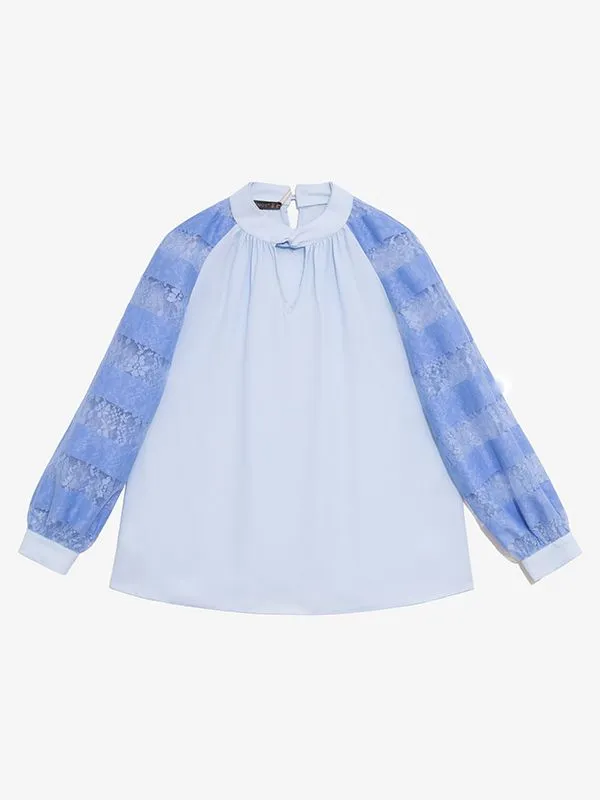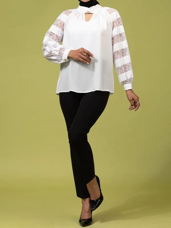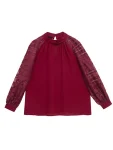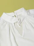 - طراحی آستین بلند و سبک آزاد بلوز، حس راحتی و وقار را توأمان منتقل میکند، در حالی که یقه گرهای خاص آن، نقطه تمرکز استایل شما خواهد بود و جلوهای هنرمندانه به لباس میبخشد.