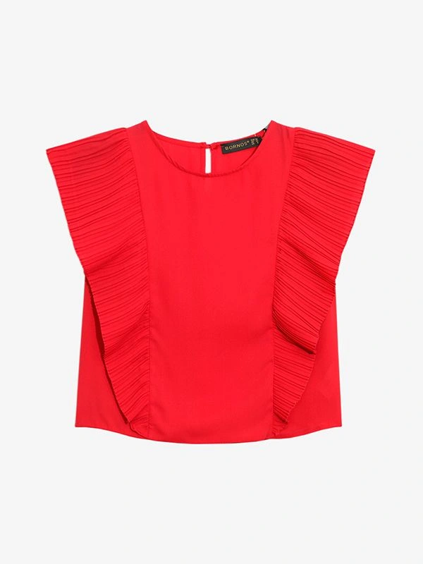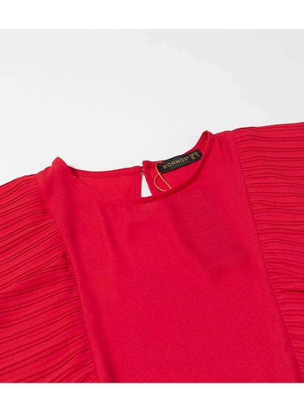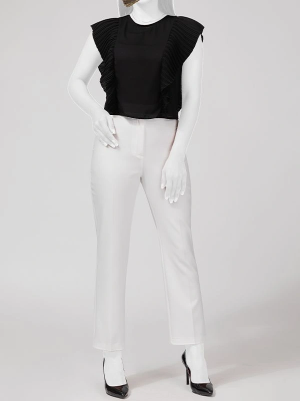 • این بلوز با یقه گرد و دو برش پلیسه‌ای طراحی شده و انتخابی شیک برای استایل‌های روزمره و نیمه‌رسمی محسوب می‌شود.