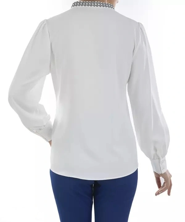 - برش Fit (متناسب) این بلوز روی اندام بهخوبی مینشیند و برای استفاده روزمره، محیط کار یا دورهمیهای نیمهرسمی کاملاً مناسب است.
