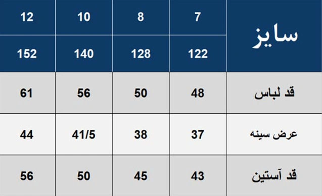 سایز 7 سال, 8 سال, 10 سال, 12 سال