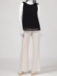 - طراحی یقه قایقی و آستین حلقهای گرهای، ظاهری زنانه و مدرن ایجاد کرده و باعث میشود این تاپ برای استایلهای کژوال و تابستانی بسیار مناسب باشد.