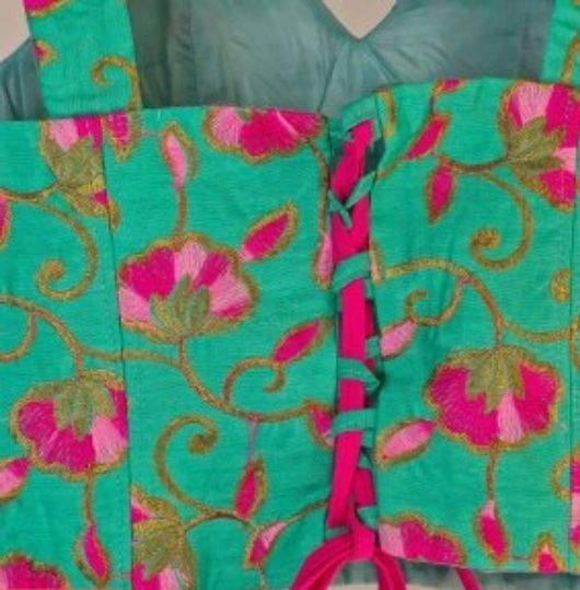 - تاپ سوزندوزی تیتیش کد TTS141086 با ترکیب رنگهای چشمنواز سبز و سرخابی، جلوهای خاص و دخترانه به استایل شما میبخشد.