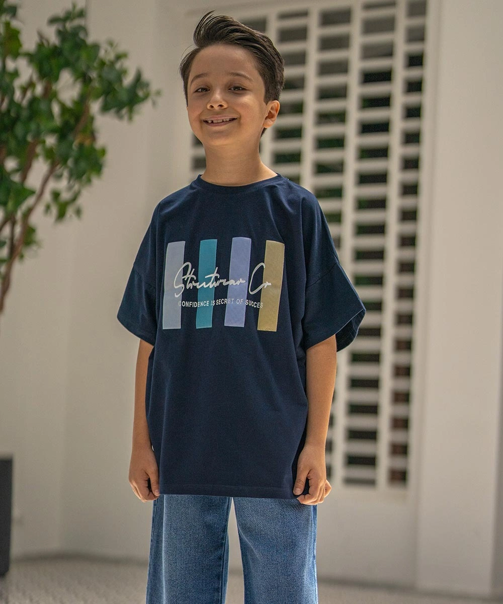 • طرح چاپی تایپوگرافی برجسته روی پارچه، جلوه‌ای خاص و متفاوت به استایل کودک می‌دهد.