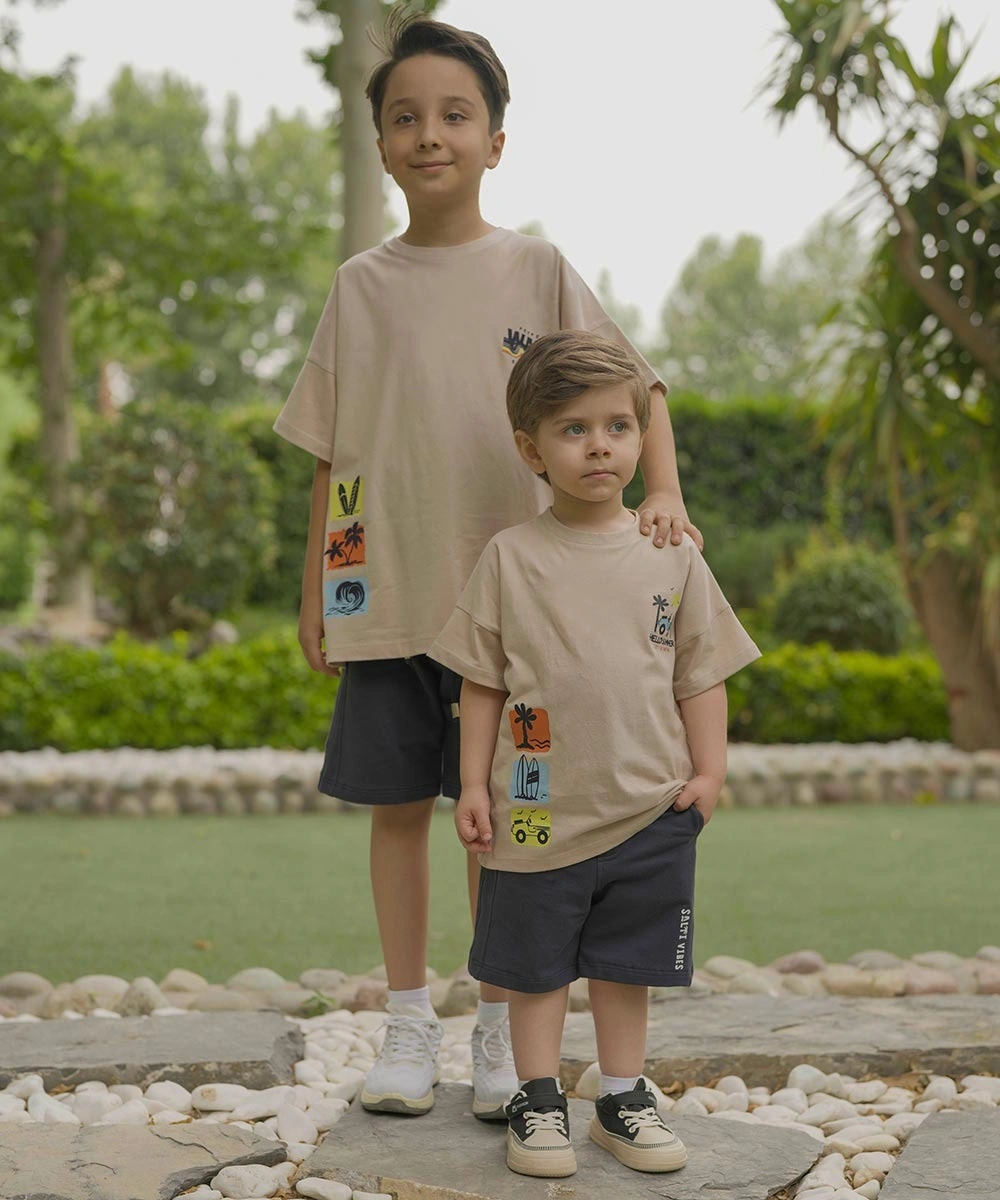 - این تیشرت با طراحی یقه گرد و طرح چاپی جذاب، ظاهری شیک و کودکانه دارد و به راحتی با انواع شلوارک و شلوار جین ست میشود.