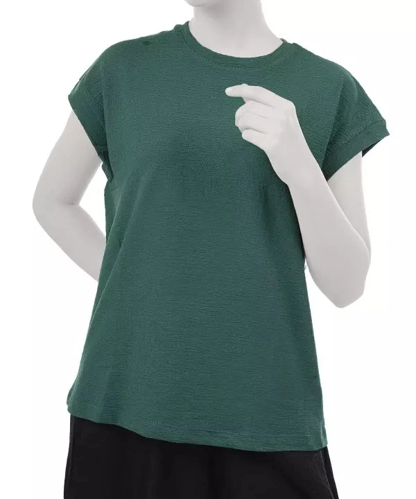 - این تیشرت با یقه گرد، آستین کوتاه و پارچه نخپنبهای کشی، حس راحتی را در کنار تنخور شیک ارائه میدهد.