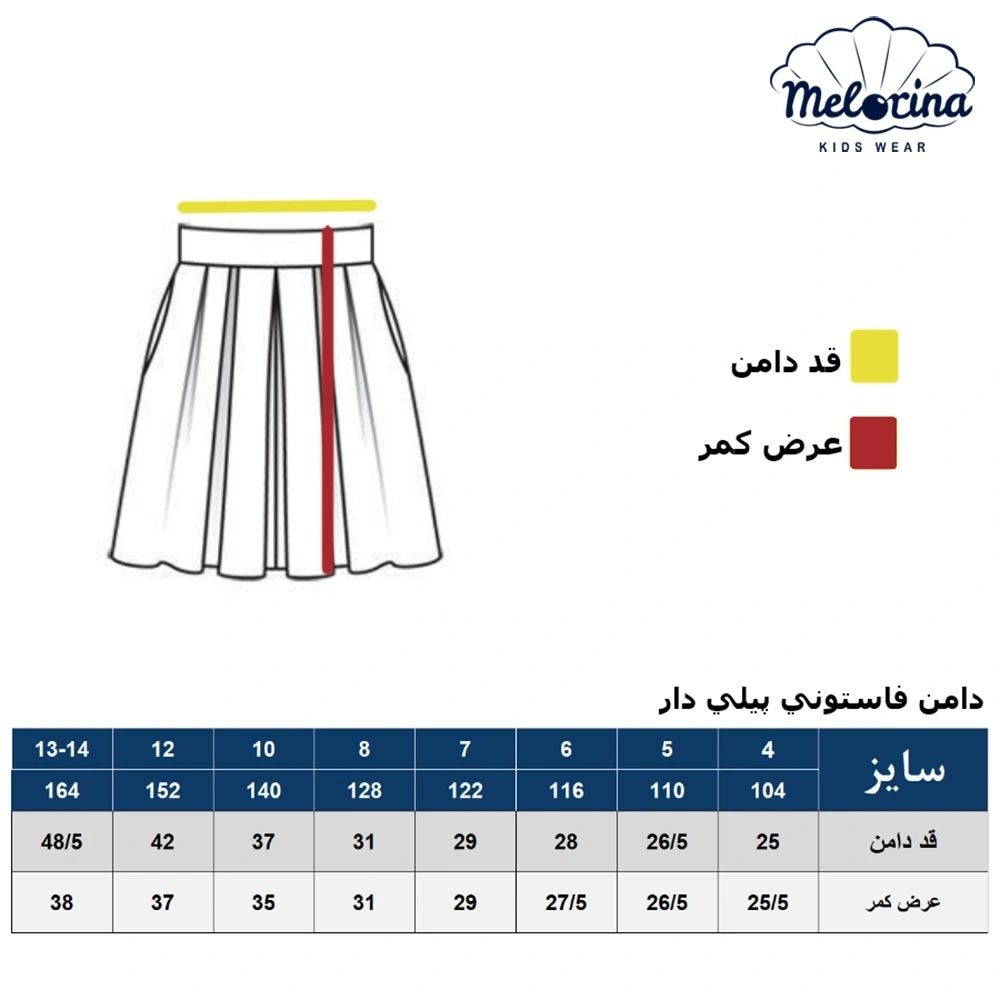 - دامن دخترانه ملورینا Melorina کد 9121 با کیفیت دوخت بالا، انتخابی عالی برای والدینی است که به دنبال لباس بچگانهی زیبا، بادوام و مناسب فصل هستند.