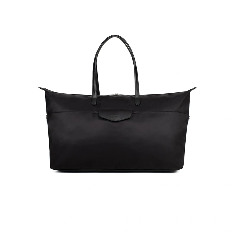 - این کیف با طراحی مدرن و مینیمال از نایلون مقاوم با جزئیات چرم گاوی ساخته شده و در عین سبکی، فضای بسیار جاداری برای حمل وسایل سفر شما دارد.