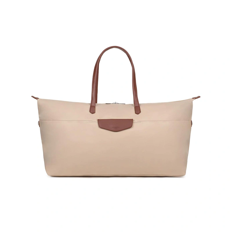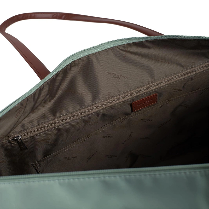 - یک کیف مسافرتی زنانه بزرگ و جادار از برند Hexagona ساخته شده از نایلون مقاوم و چرم گاوی. از کالکشن Pop 17، سبک، بادوام و مناسب سفرهای کوتاه و طولانی.