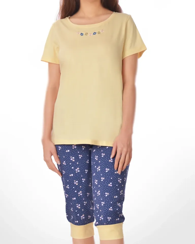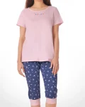 ست تیشرت و شلوار زنانه ناربن Narbon کد 3891 شامل یک تیشرت آستین کوتاه با یقه گرد و شلوار برمودای راحت و خنک است. طراحی ساده و در عین حال ظریف این لباس، آن را به گزینهای مناسب برای استفاده روزمره در منزل تبدیل کرده است.