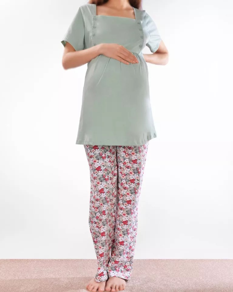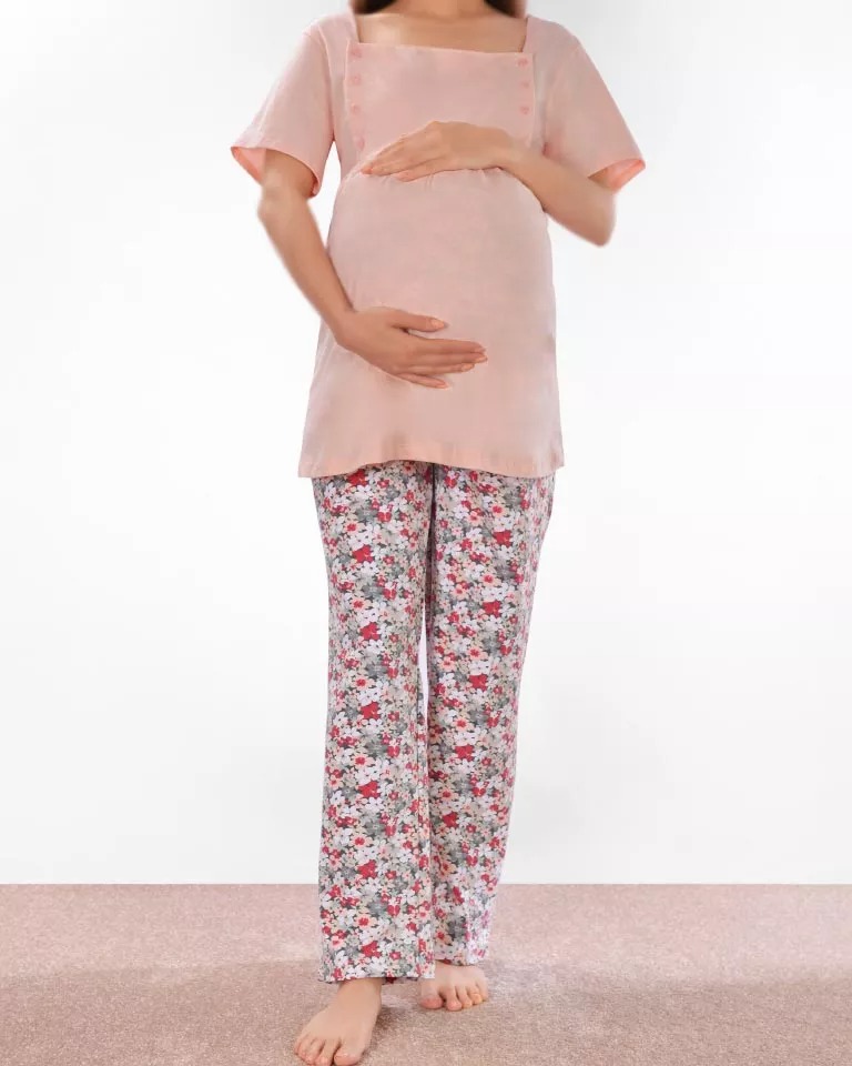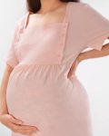 - طراحی یقه خشتی و آستینهای کوتاه، حس آزادی و راحتی بیشتری را در دوران بارداری و شیردهی به شما هدیه میدهد.