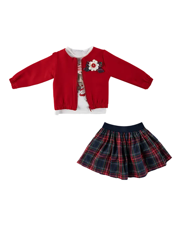 - ست سهتکه دخترانه جاستیفای Justify کد 25557 مدل گل قرمز ترکیبی از ظرافت و راحتی است که استایلی دخترانه و شاد برای فرزند شما ایجاد میکند.