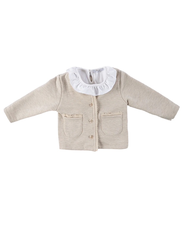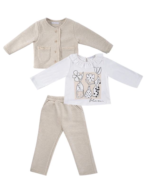 - ست سهتکه دخترانه Justify کد 35528 رنگ کرم، انتخابی شیک و کاربردی برای دختران در فصلهای پاییز، زمستان و بهار است.