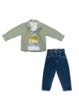 - اگر به دنبال لباسی باکیفیت و ظاهر متفاوت هستید،ست سه تیکه پسرانه جاستیفای Justify کد 35542 مدل جین جنگلبان جاستیفای بهترین گزینه است.