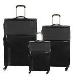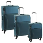- این ست شامل سه سایز چمدان بزرگ، متوسط و کابین است و از جنس پلیاستر (Polyester) مقاوم با بدنه سافت (نرم) ساخته شده است.