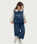 - طراحی ست ژیله و شلوار دخترانه ملورینا Melorina کد 43109 بر پایه هماهنگی کامل بین ژیله و شلوار انجام شده تا یک استایل یکپارچه، تمیز و منظم ایجاد شود.