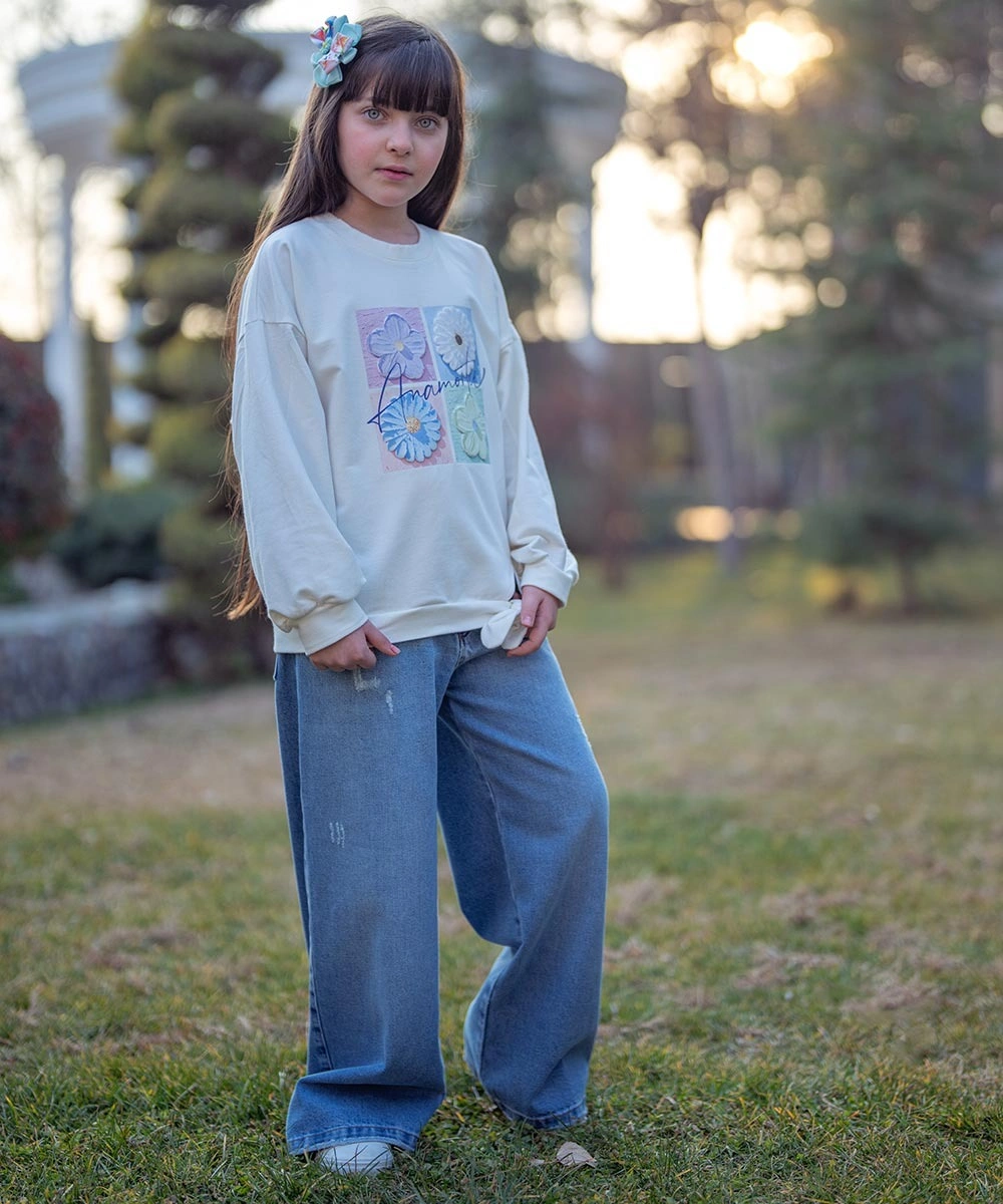 - شلوار جین دخترانه ملورینا (Melorina) کد 9324 با طراحی ساده و جذاب، انتخابی ایدهآل برای استایل روزمره کودکان است.