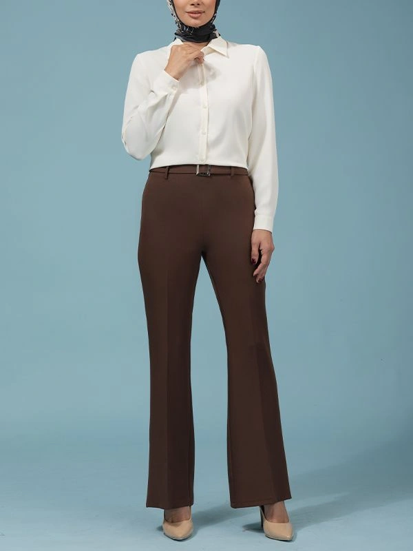 - شلوار زنانه برنس Bornos کد 10104 با جنس پارچه کرپ مازاراتی، انتخابی شیک و کاربردی برای استایلهای مجلسی و روزانه است.