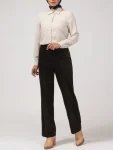 - مدل راسته در کنار فاق بلند باعث ایجاد فرم زیبا و کشیده در اندام شده و بهخوبی با استایلهای کلاسیک هماهنگ میشود.