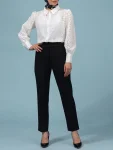 - این شلوار با مدل راسته و طراحی کلاسیک، بهراحتی با انواع بلوز، بافت و کت ست میشود و مناسب استایلهای کلاسیک و روزمره است.