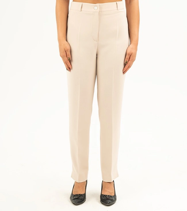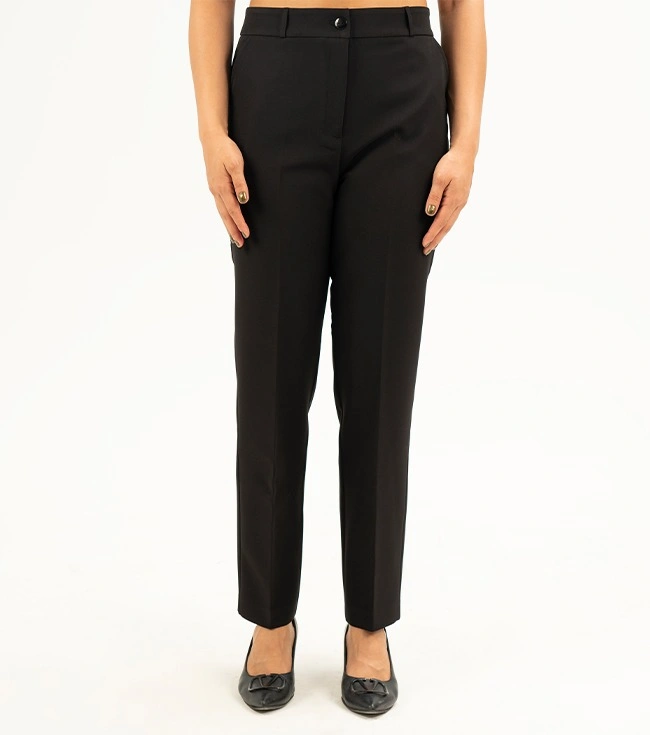 - این شلوار با فاق بلند، فرمدهی مناسب به اندام را تضمین کرده و با کمر کشی پشت و زیپ مخفی کناری، راحتی و سهولت در پوشیدن را فراهم میکند.