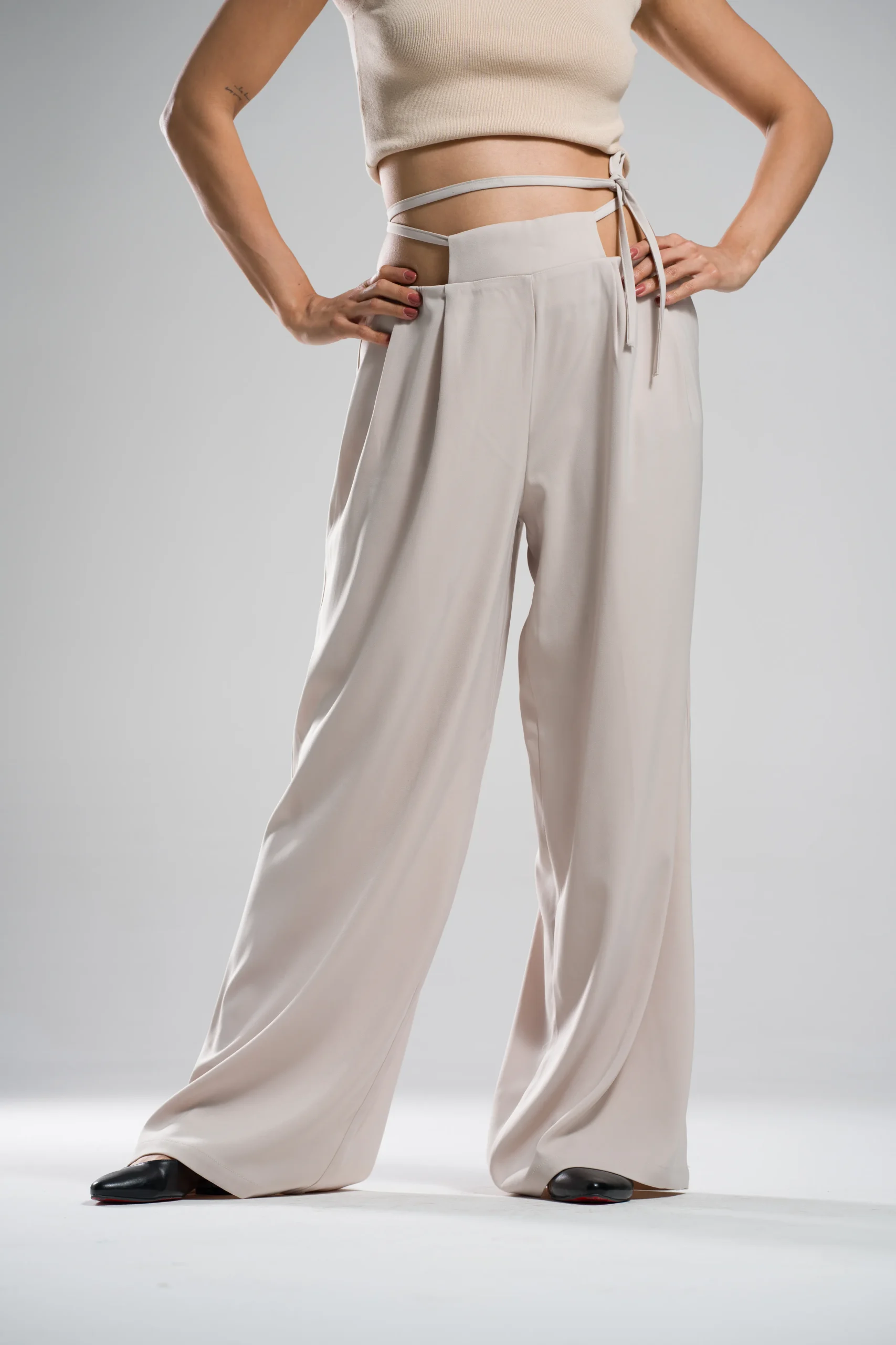 - شلوار زنانه لوکه Lokke کد 00316 با طراحی کمردار، ترکیبی از راحتی و استایل شیک برای استایلهای روزمره، رسمی و اداری است.