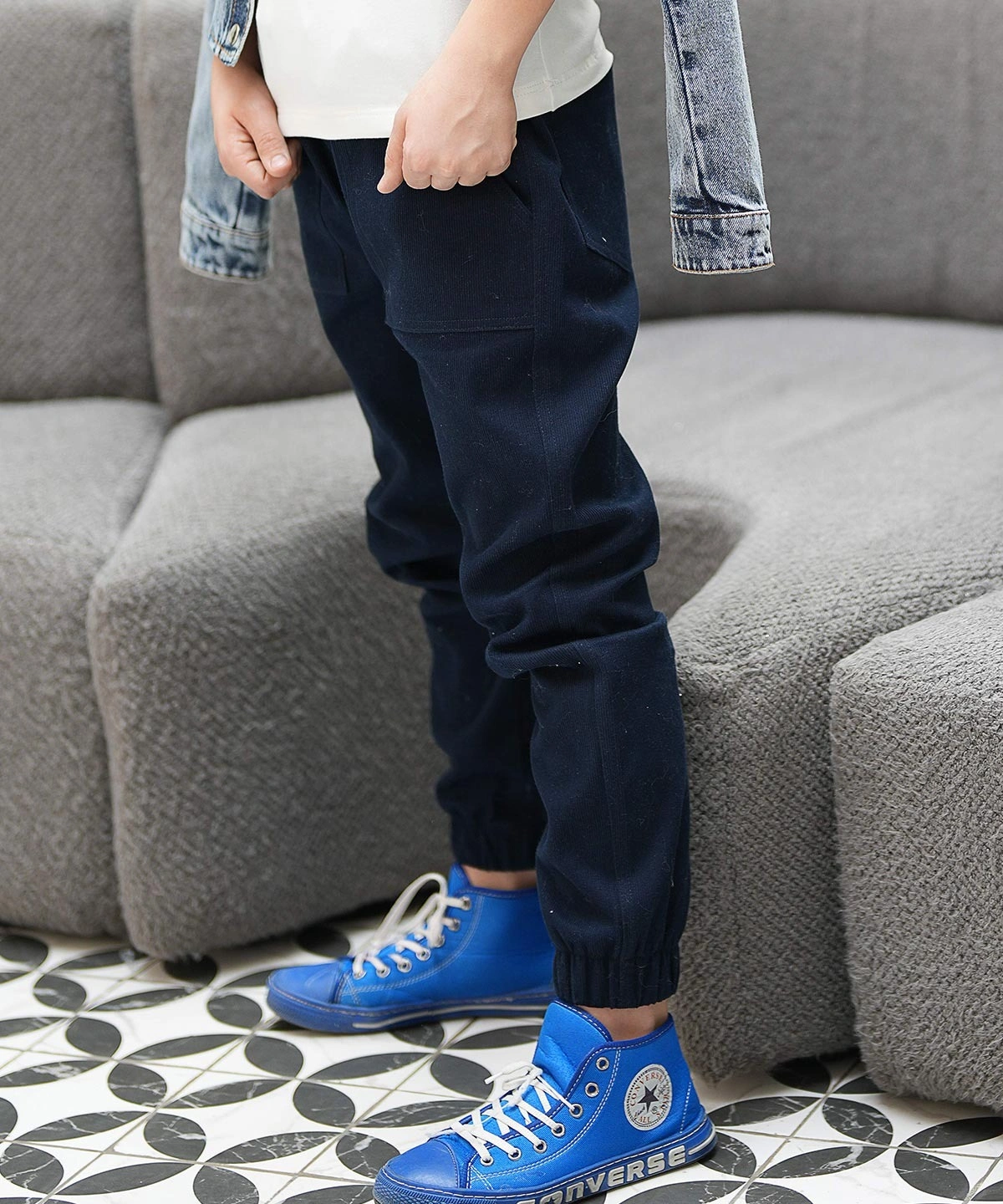 - طراحی کاربردی آن شامل دو جیب مورب در جلو و دو جیب پاکتی در پشت است که علاوه بر ظاهر شیک، فضای کافی برای وسایل کوچک کودک فراهم میکند.