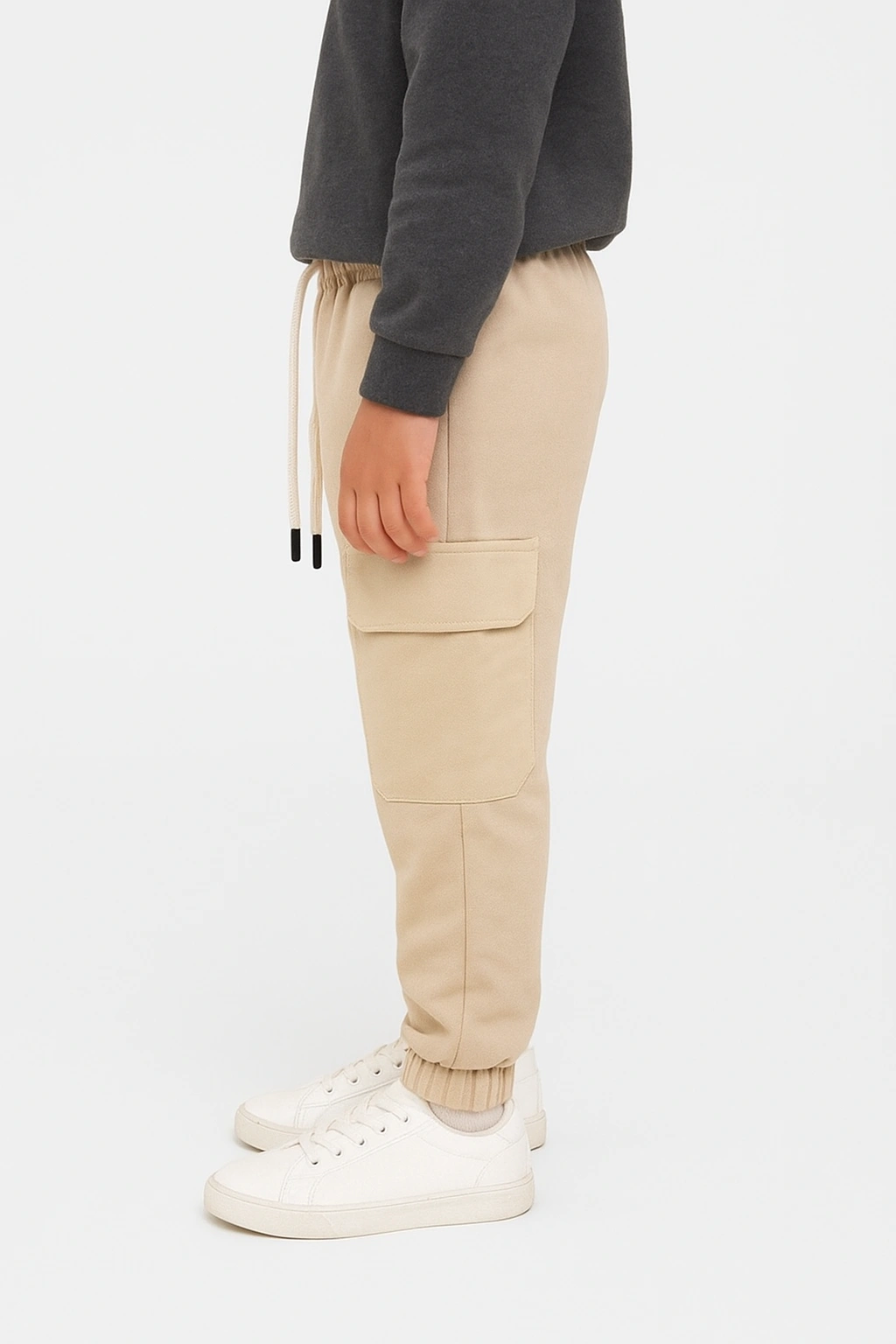 - همچنین وجود دو جیب پاکتی در کنارهها، علاوه بر زیبایی، کارایی لباس را افزایش داده و به استایل اسپرت کودک جلوهای جذاب میبخشد.