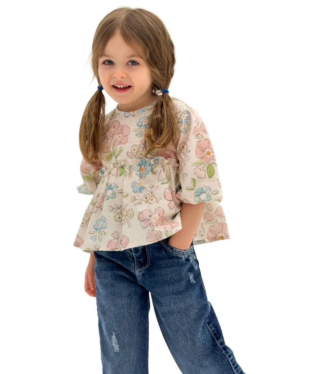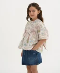 - طراحی شومیز دخترانه ملورینا Melorina کد 43119 با یقه گرد کلاسیک و آستین کوتاه، ظاهری ساده اما شاد و کودکپسند ایجاد کرده است.