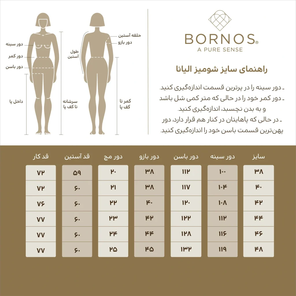 - اگر به دنبال یک شومیز زنانه کژوال با طراحی خاص، جزئیات جذاب و تنخور مناسب برای دورهمیها یا استایل اداری ملایم هستید، شومیز برنس مدل الیانا (Bornos Eliana 02439) انتخابی ایدهآل است.