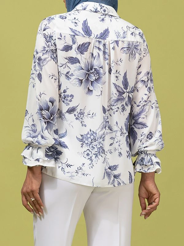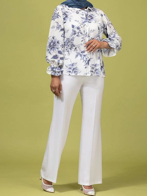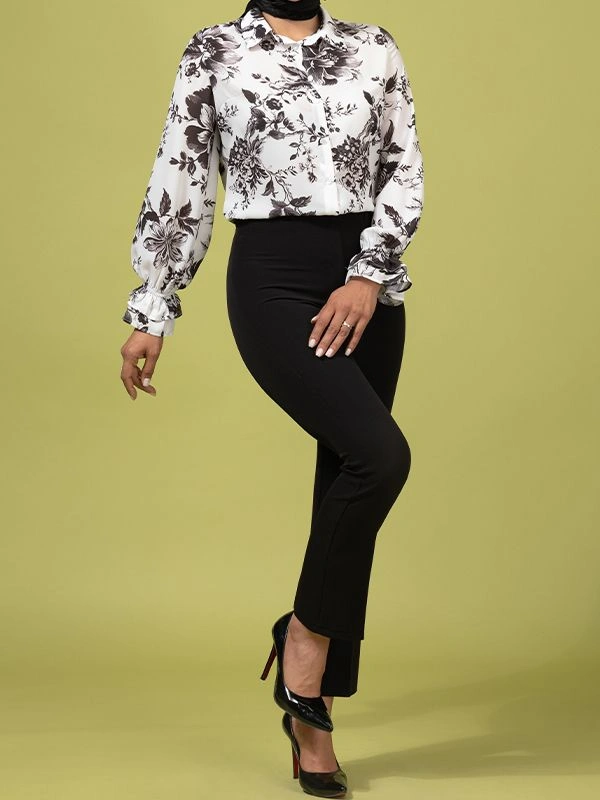 - شومیز زنانه کرپ حریر چاپی مدل روژینا از برند برنس (Bornos) انتخابی شیک و ظریف برای خانمهایی است که به دنبال ترکیبی از راحتی و جذابیت در پوشش خود هستند.