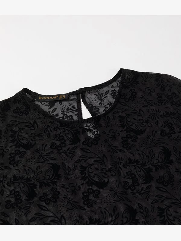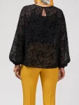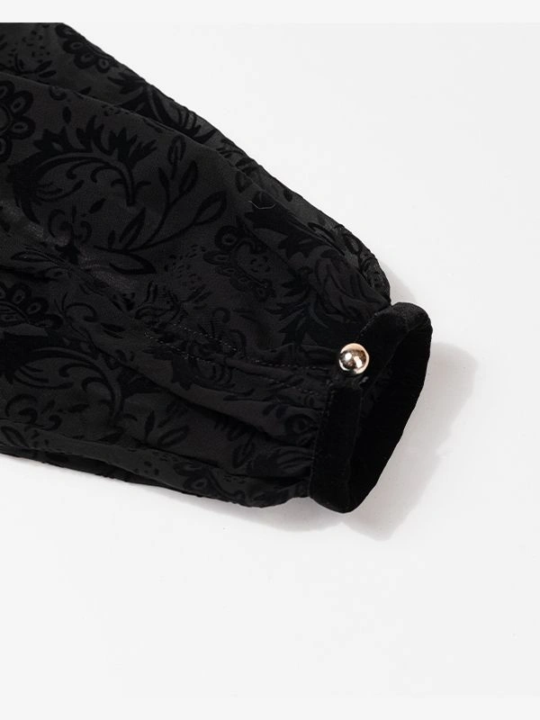 - این بلوز از پارچه حریر با طرح مخمل تهیه شده و بافت لطیف و سبک آن، گزینهای عالی برای مهمانیها و دورهمیهای خاص است.
