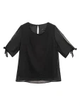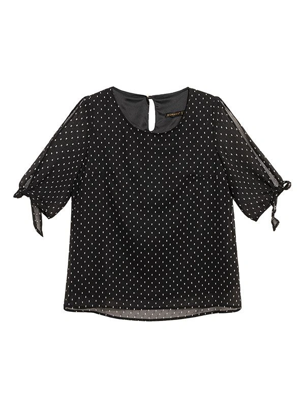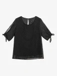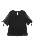 • طراحی یقه گرد و آستین کوتاه چین‌دار، جلوه‌ای دل‌نشین و دخترانه به استایل می‌بخشد و آن را به گزینه‌ای عالی برای فصول بهار و تابستان تبدیل کرده است.