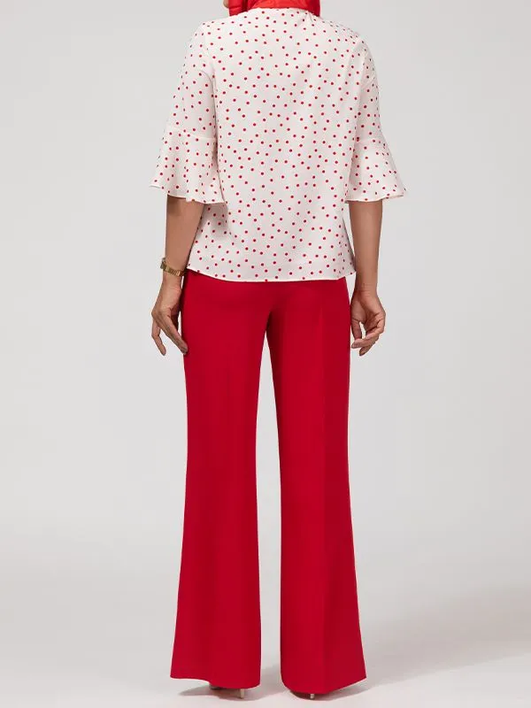 - این شومیز از پارچه کرپ ژرژت تهیه شده است؛ پارچهای سبک، لطیف و خوشفرم که ایستایی بسیار زیبایی روی بدن دارد و آن را برای فصلهای بهار و تابستان ایدهآل میسازد.