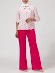 - طراحی این شومیز با یقه کراواتی، جلوهای رسمی، زنانه و بسیار جذاب به استایل شما میبخشد.