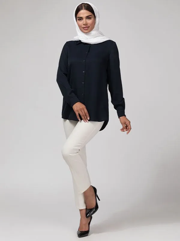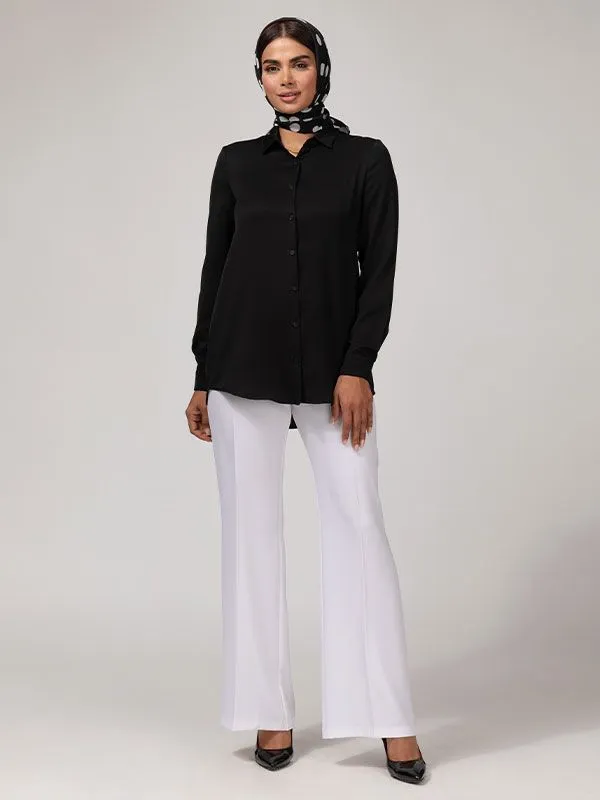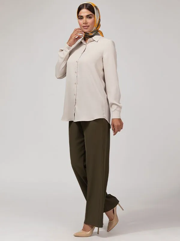 - طراحی یقه مردانه و آستین بلند به این مدل ظاهری کلاسیک و شیک میبخشد و آن را برای استایلهای اداری، روزمره و نیمهرسمی مناسب میکند.