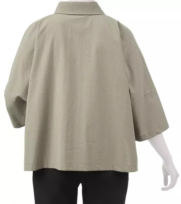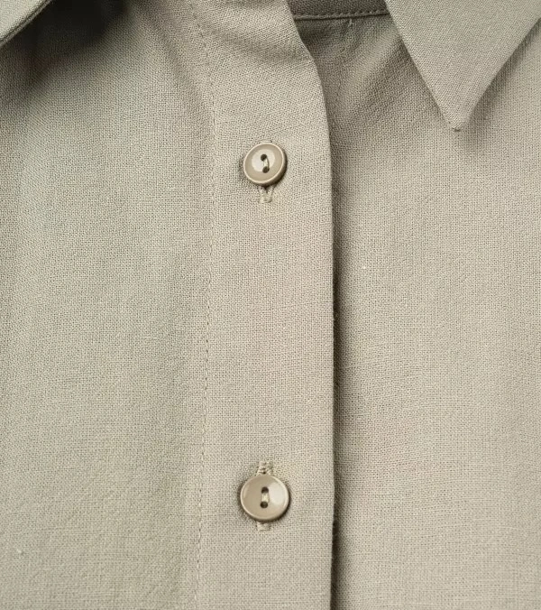 - این شومیز با طراحی ساده و مینیمال، از پارچه لینن نازک و تنفسپذیر تهیه شده که در هوای گرم به خوبی از تعریق جلوگیری میکند و حس سبکی را به پوست منتقل میکند.