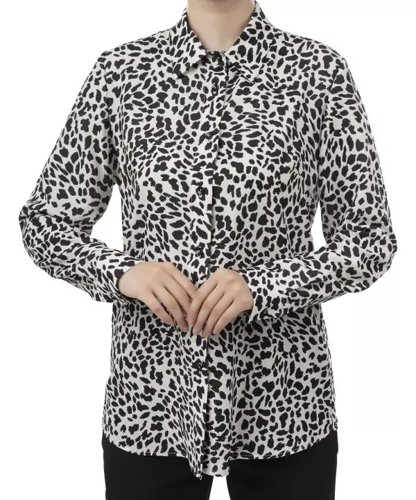 - این شومیز با یقه برگردان و فرم Loose Fit (آزاد)، آزادی حرکتی عالی را در کنار ظاهری شیک ارائه میدهد.