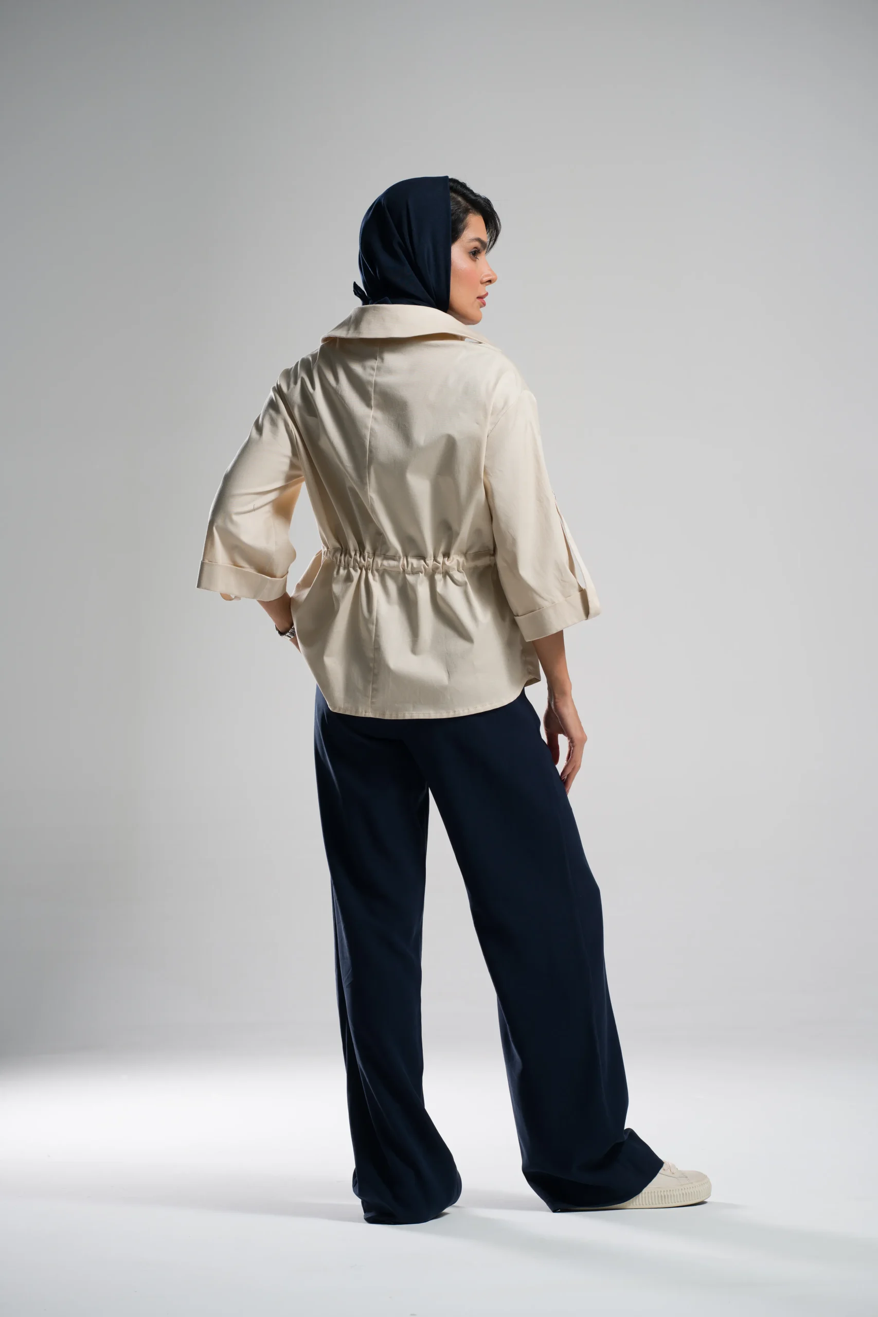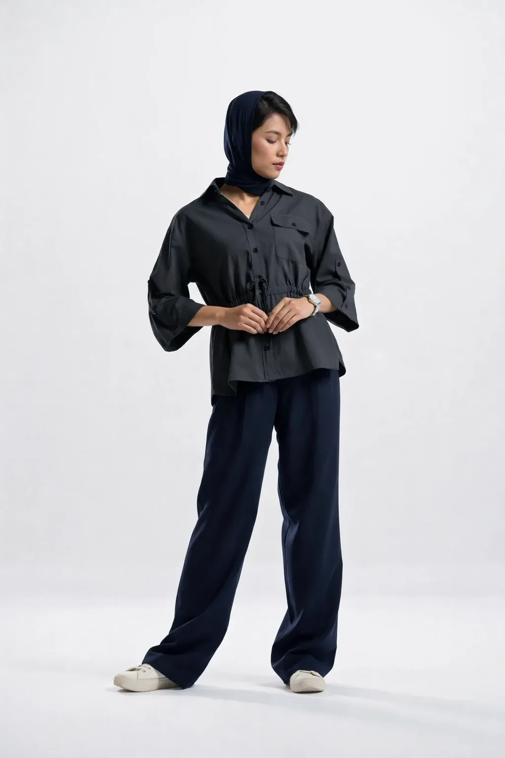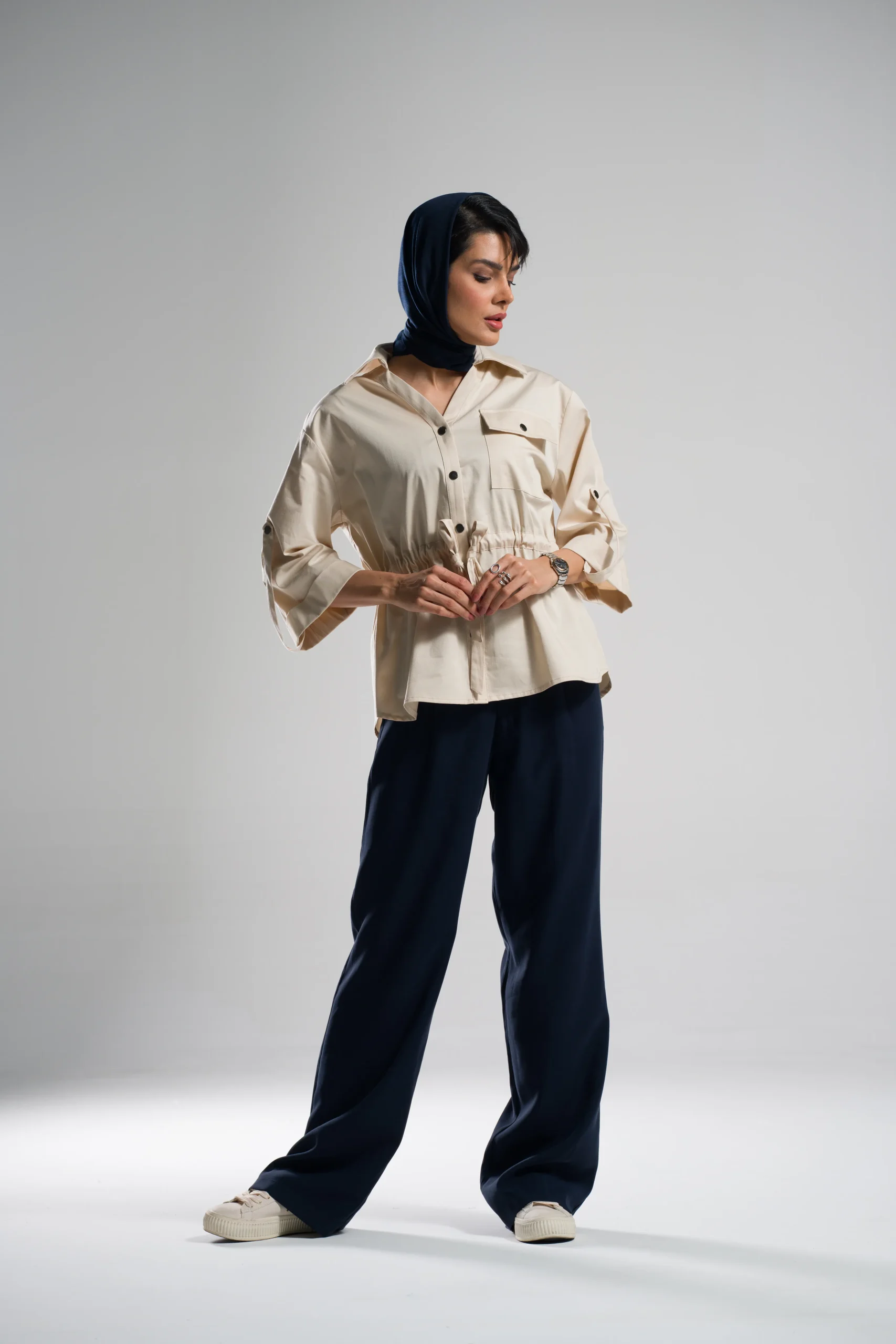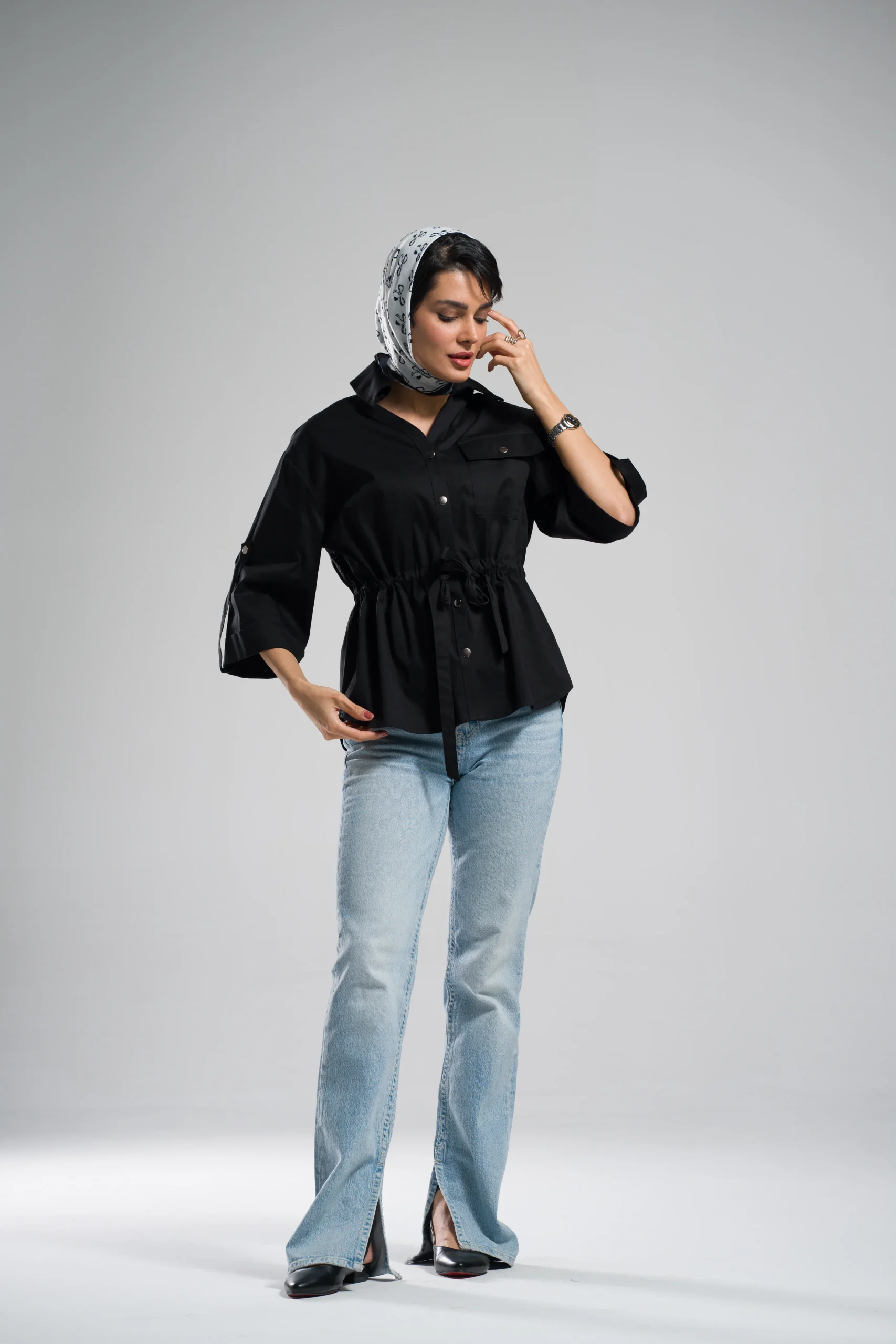 • این شومیز با فرم آزاد در بالاتنه و قسمت کمر کشسان (گت)، حالت ایستایی جذاب و متمایزی به استایل می‌دهد و مناسب انواع موقعیت‌های روزمره، رسمی دوستانه و حتی مهمانی‌های سبک است.