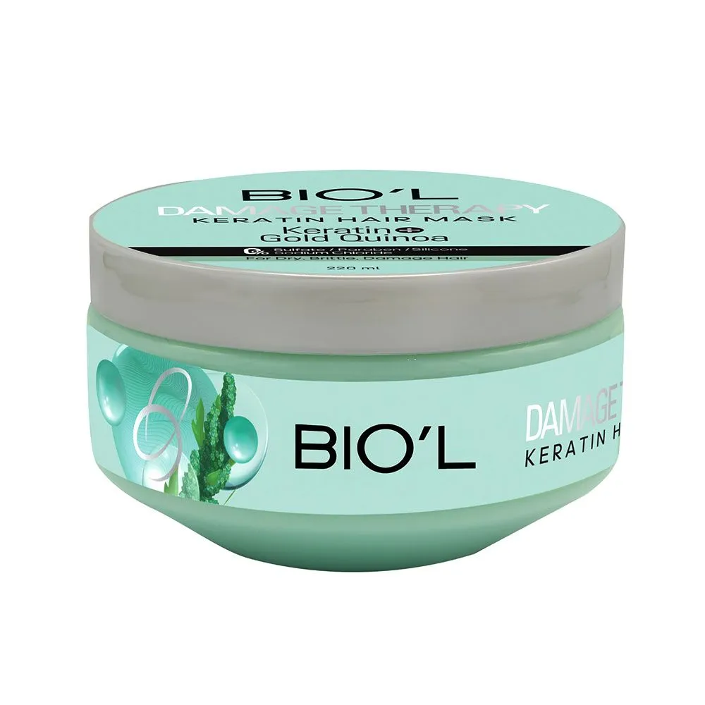- ماسک مو دمیج تراپی سولفات فری بیول یک درمان تخصصی برای ترمیم عمقی موهای خشک، شکننده و آسیبدیده است.