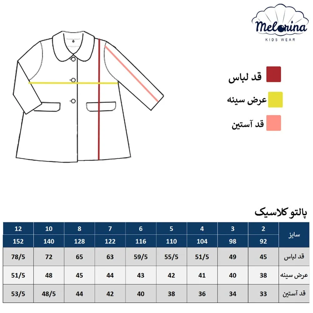 - پالتو دخترانه ملورینا Melorina کد 91012 یکی از شیکترین و محبوبترین محصولات کالکشن پاییزه و زمستانی ملورینا است که با طراحی ظریف و دوخت حرفهای، استایلی گرم، لطیف و مجلل برای دختران ۲ تا ۱۲ سال به ارمغان میآورد.