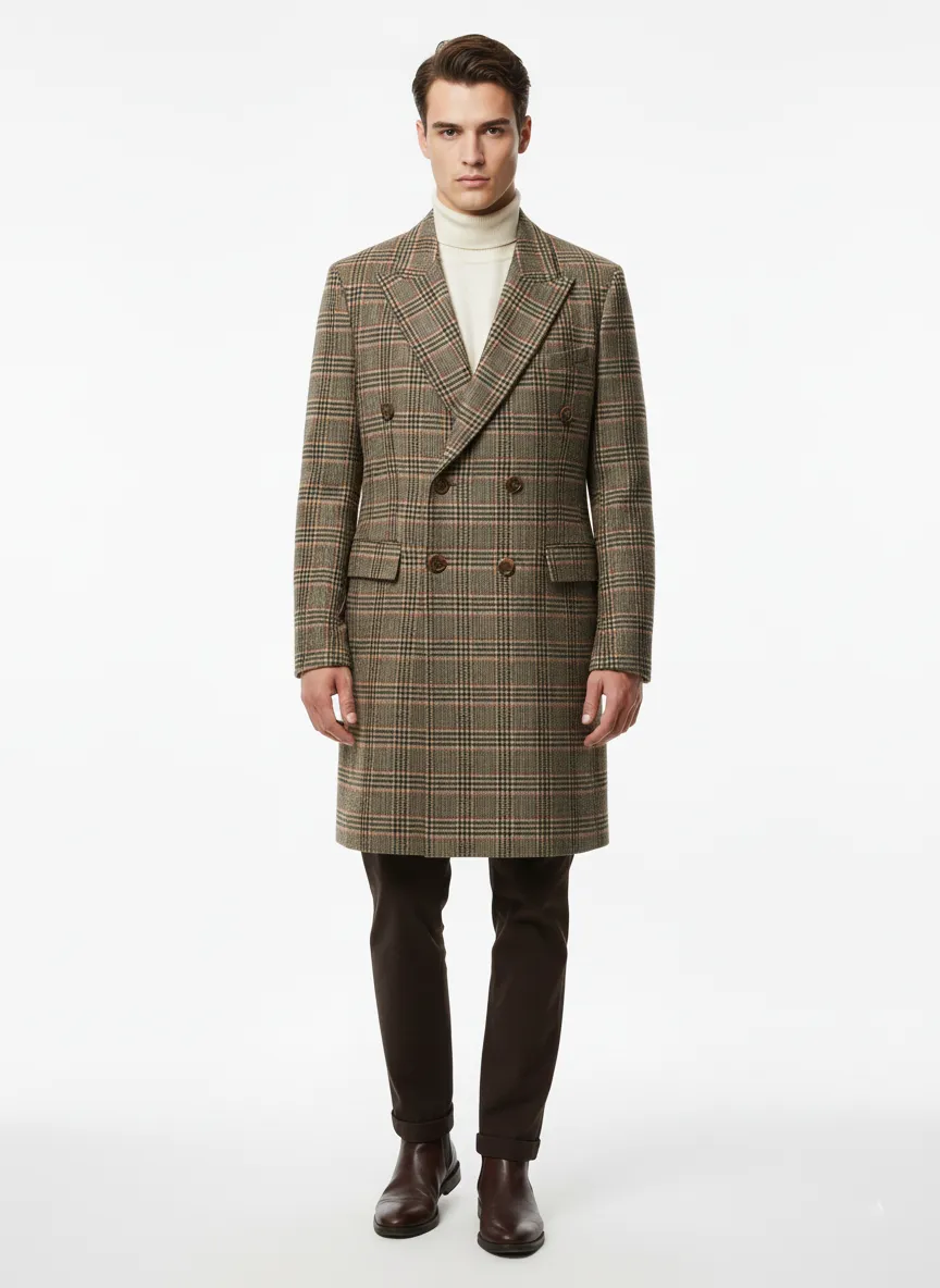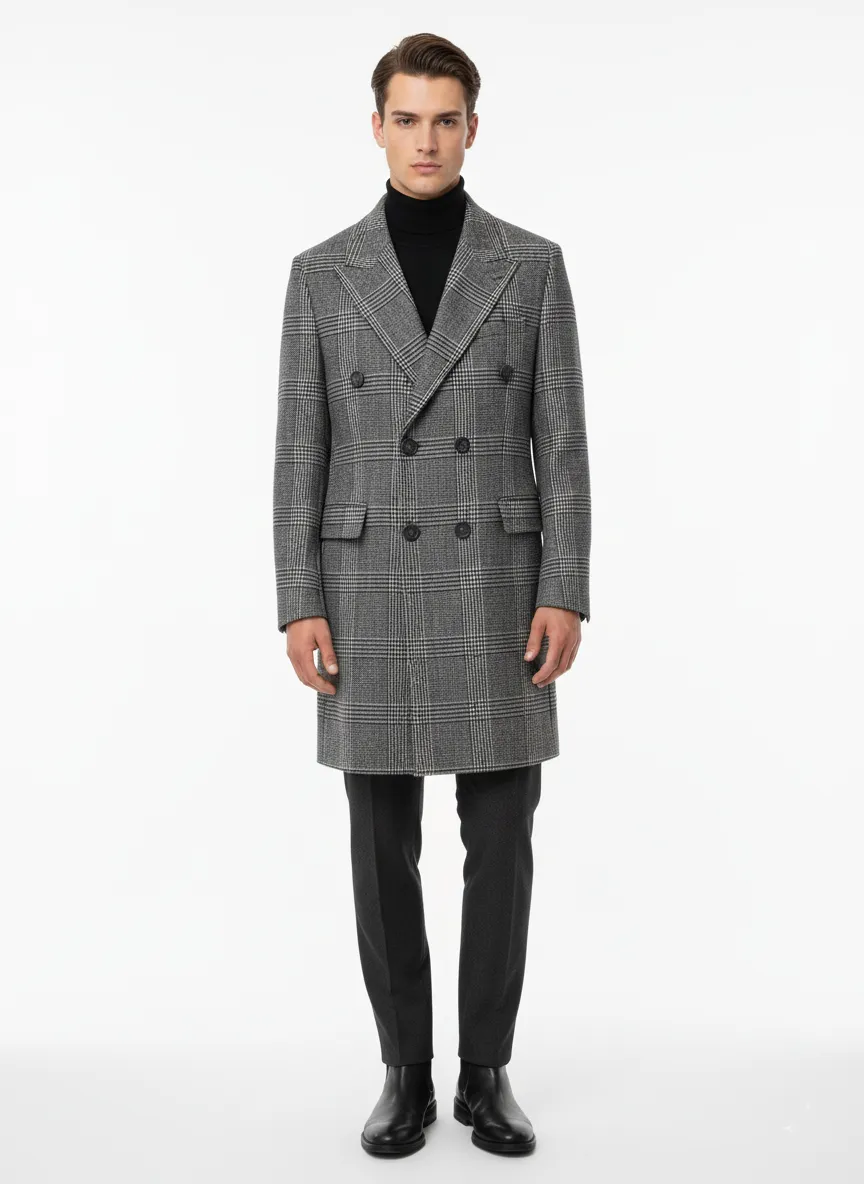 - این پالتو بلند مردانه با یقه انگلیسی و آستین بلند طراحی شده و طرح چهارخونه آن، جلوهای خاص و متفاوت به استایل زمستانی شما میبخشد.