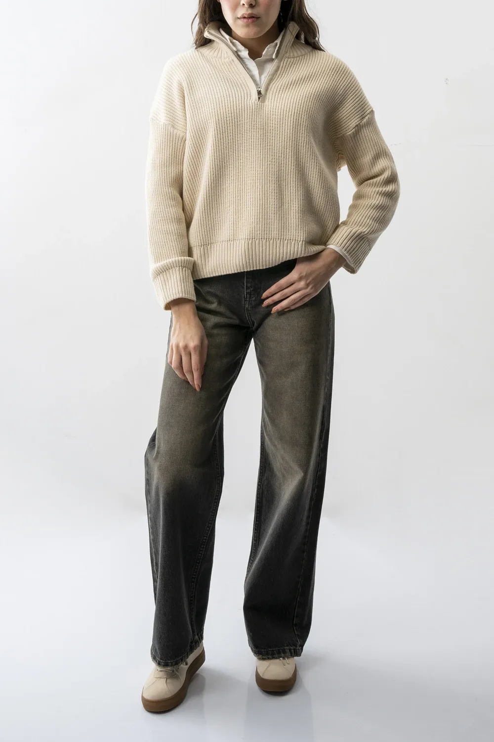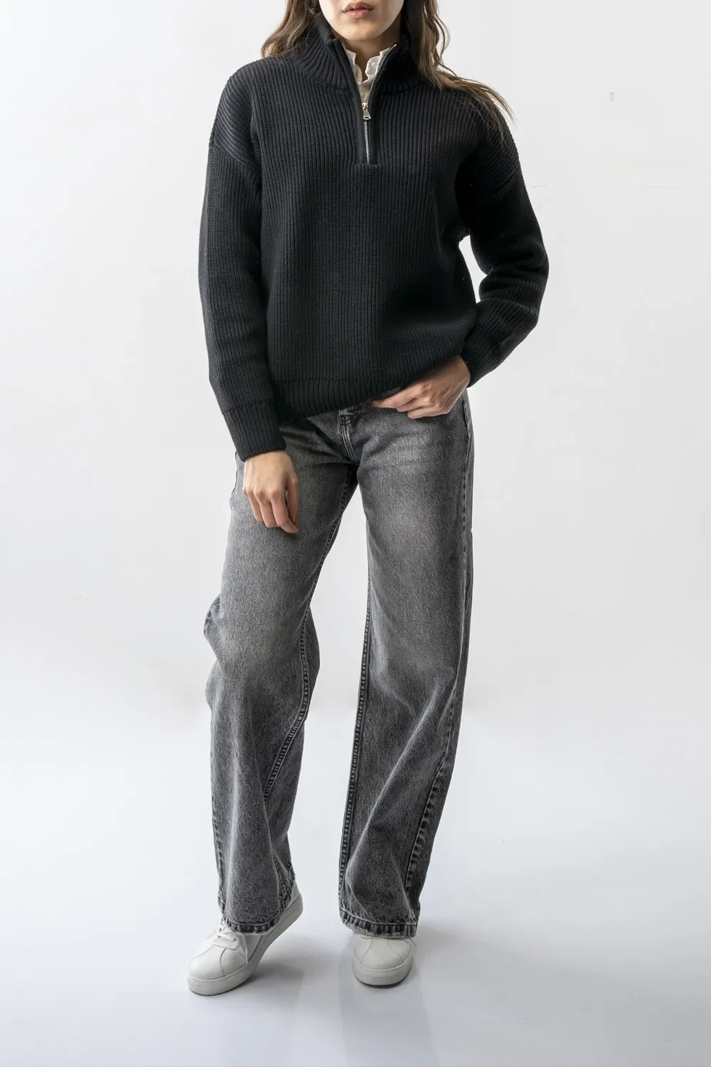- این پلیور با کات آزاد (Free Size) طراحی شده و برای استایل با شلوارهای جین نیمبگ، مامفیت و اسلاچی بسیار مناسب است.