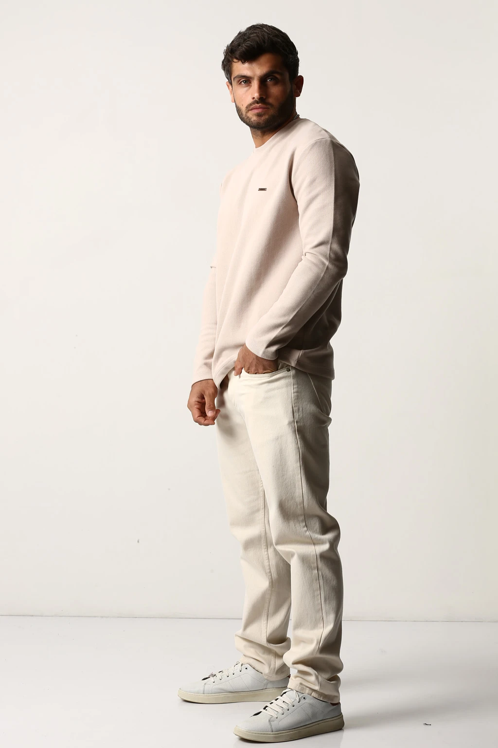 - سلانیک آستین بلند یقه کشباف مردانه در پنج رنگ کاربردی مشکی سرمه ای کرم زرشکی و دودی از کالکشن پاییز-زمستان 2024 است.