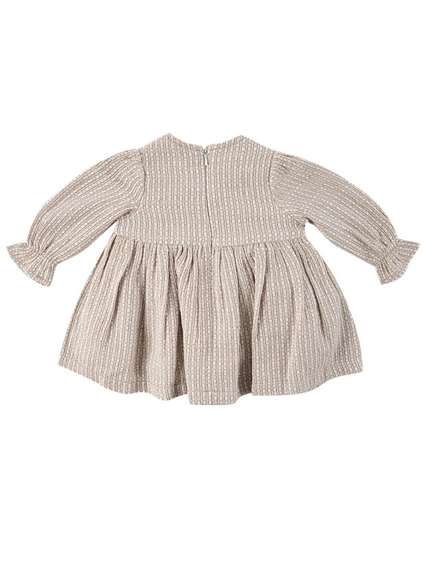 - طراحی این لباس به گونهای است که هم برای استایل روزمره و هم برای مهمانیهای خانوادگی مناسب بوده و ظاهری معصوم و زیبا به کودک میبخشد.